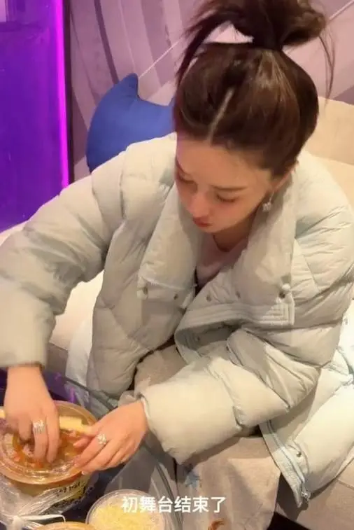因为阚清子吃的不是麻辣烫,是"反差感"。镜头前她是《咏春》组的气场担当,是初舞台上眼神能杀人的表演者。镜头后呢?羽绒服一裹,蹲在后台大口嗦粉,辣到吸气还要竖起大拇指。这种切换太戳人了——谁下班之后不想瘫着吃点好的?
